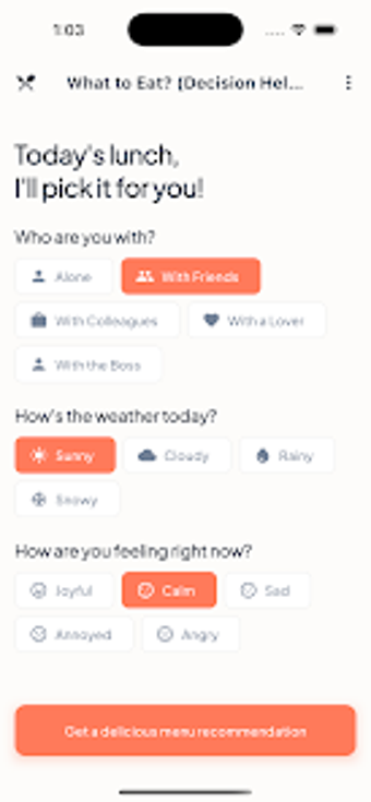 What2Eat4Lunch è un'applicazione per Android progettata per semplificare la scelta del pranzo. Con un'interfaccia intuitiva e un sistema di raccomandazione basato su intelligenza artificiale, l'app suggerisce opzioni alimentari in base al tuo stato d'animo, alle condizioni meteorologiche e alla compagnia. Le categorie di suggerimenti variano da scelte 'sicure e professionali' per pranzi di lavoro a 'comfort food' per giornate più grigie.